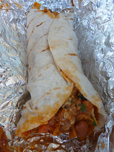 “It’s a Frito pie in a tortilla,” he proudly explained. Indeed, that’s exactly what the combination of asparagus, potato, spinach, tortilla strips, rice, huevos rancheros and cheese (kicked up with bonus chorizo) went down tasting.