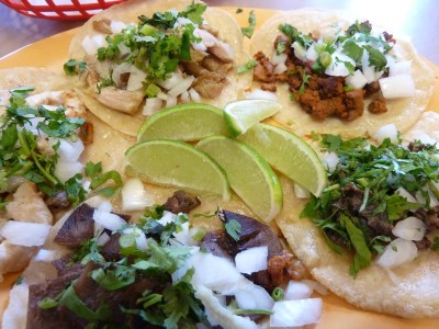 Before receiving the onslaught of tacos, we had a chance to peruse the menu. Aside from the typical Mexican fare, including accessible tostadas, barbacoa and tortas, there was an abundance of Tex-Mex selections. Among them, crunchy chicken tacos and a chimichanga.
